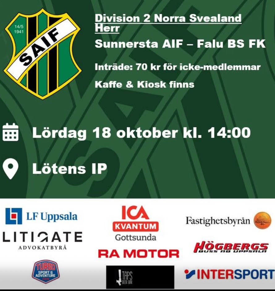 Klicka på bekräftelselänken i det mejl vi skickat dig för att börja ta emot uppdateringar från Sunnersta AIF A-lag Herr.