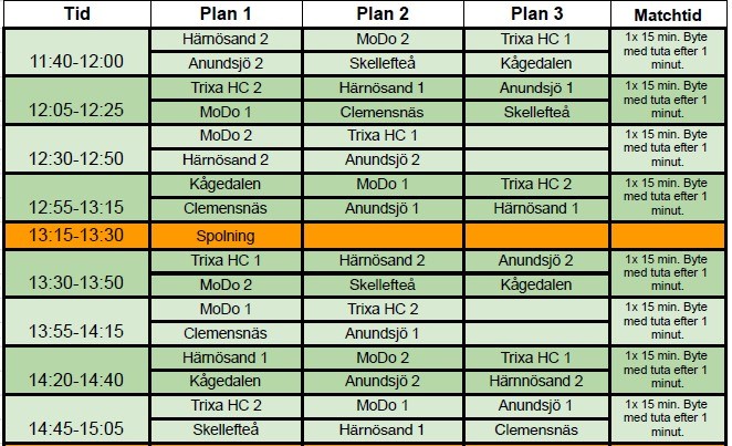 | Teknik & spel U15, U16, U19 D | 12 mar, 15:15 |