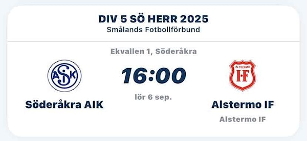 På lördag är det hemmamatch igen då Alstermo IF gästar Ekvallen ⚽