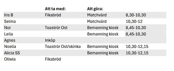 Eget ansvar att byta med annan spelare om man inte har möjlighet att hjälpa till detta sammandrag.