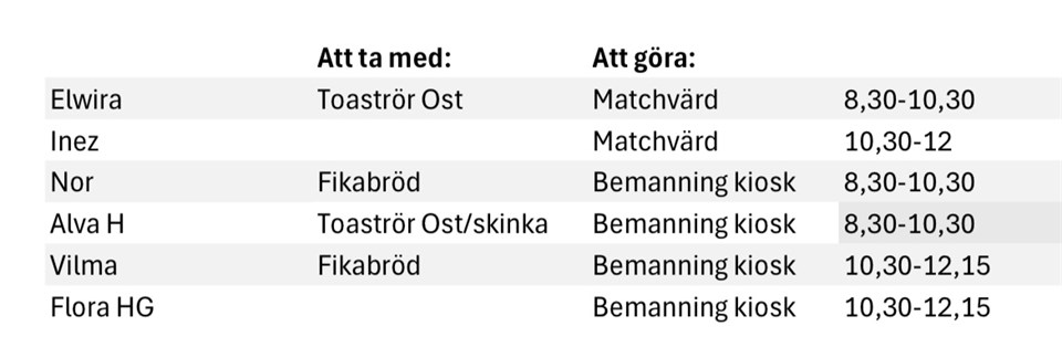 Har man i uppdrag att ta med fika/toast/annat inköp så ska detta lämnas i kiosken kl. 08.30-09.00.