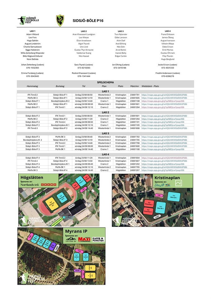 Till helgen är det dags för Härnö Fotbollsfest! Idag har kallelserna för båda dagarna gått ut till alla spelare som anmält intresse för cupen. Viktigt att varje spelare svarar på kallelserna för både lördag och söndag. Vi har 4 lag som kommer att spela 5 matcher/lag fördelat på två dagar. Matcherna är 2x20 min. Matcher lördag och söndag, se länken: Härnö Fotbollsfest I varje lags aktivitet har tiderna lagts in, men håll hellre koll på spelschemat via cupens hemsida ifall det blir planbyte eller något annat som gör att tiderna förändras. Vi som är i spelformen 5 mot 5 spelar på Högslätten och Kristinaplan i Härnösand. För att hitta, se länken: Härnö Fotbollsfest Varje barn har med sig minst en vuxen som ansvarar för barnet mellan matcherna. Viktigt att fylla på med energi under dagarna och ha kläder efter väder, ev gärna ombyte om det blir blött. Det kommer att finnas mat att köpa på området. Vi kommer även ha ett tält där vi kan samlas under matcherna och gemensamt peppa varandra. Tränarna möter upp spelarna vid tältet 30 min innan varje matchsstart. Efter matcherna samlas vi åter vid tältet. All information om cupen finns via länken: Härnö Fotbollsfest Under cupen är det viktigt att vi respekterar, stöttar och tar hand om varandra. Vi tänker på att ha ett fint förhållningssätt inom vårt egna lag och mot andra. Vi ser fram emot en rolig cuphelg tillsammans!! P-16 17 aug 2kommentarer