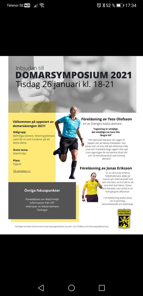 Domarsymposiet Nu har anmälan för årets Symposium som går av stapeln digitalt den 26 januari öppnat. In på VFF:s hemsida och följ länken.