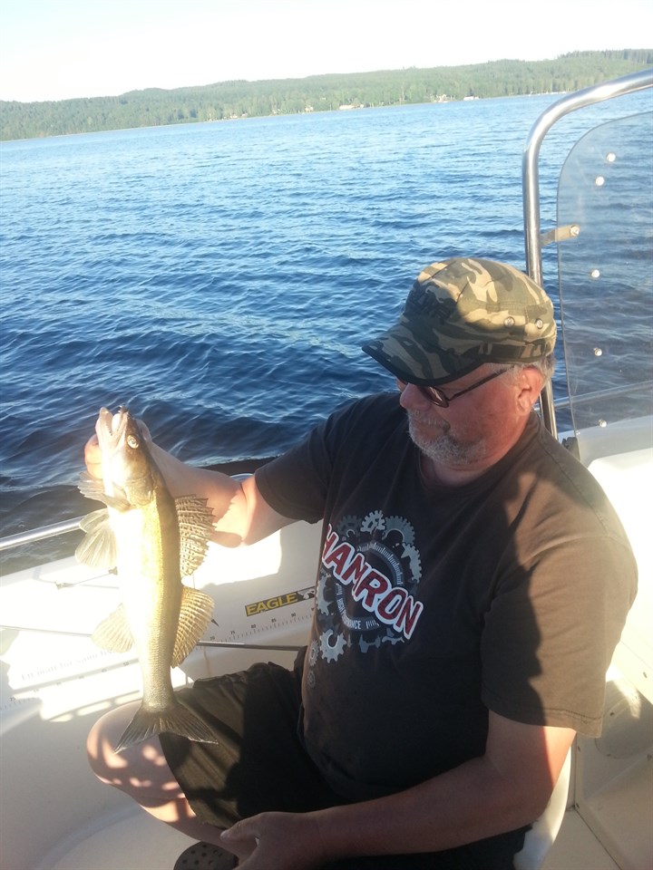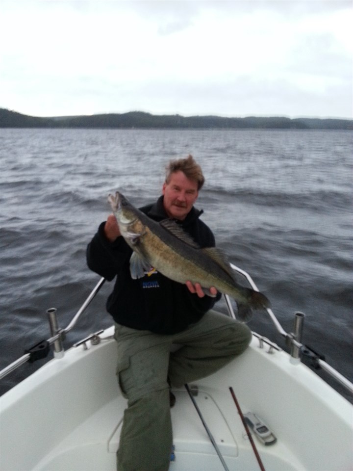 Jag och Janne var ute och fiskade på Mjörn under söndagskvällen. Vädret var helt fantastiskt fint med närmare 30 grader i luften och vattnet visade på 26 grader. Fisket var bra och vi fick 5 fina gösar och Janne fick kvällens största på 5 430 gr och 84 cm lång. Den fick gå tillbaks igen efter några bilder och övriga fiskar vägde från 2 kg och uppåt. Mvh Christer Norberg SFKPelikanen 6 jul 2015 1kommentar