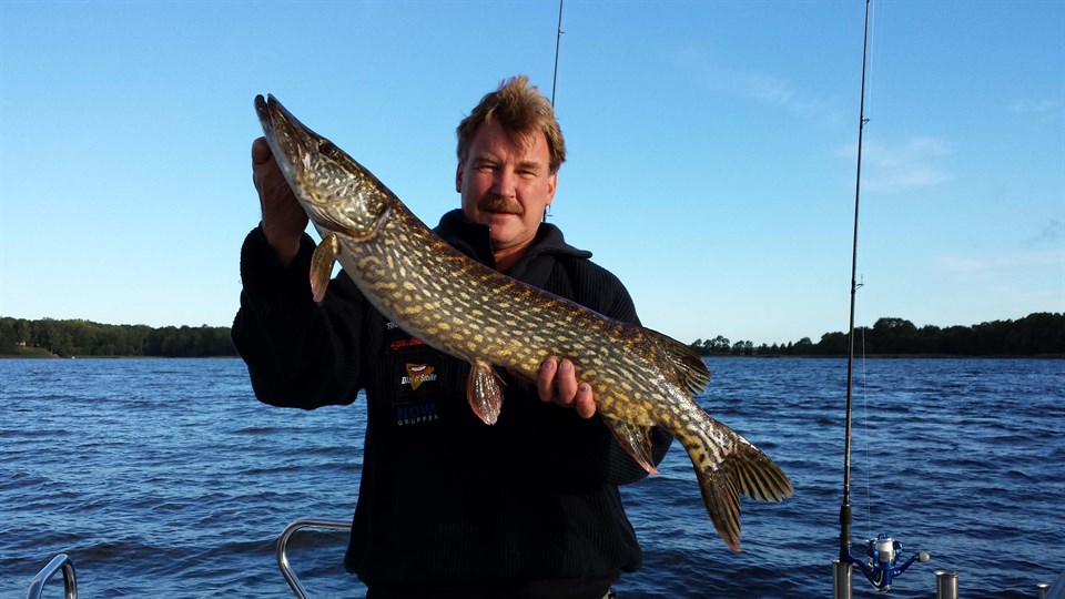 Vi var 3 båtar ute på Anten idag för att försöka fånga några fina abborrar och gäddor. Det var ganska blåsigt så det blev gäddfiske större delen av dagen. Fisket var lite trögt men det kom upp en del skapliga gäddor , 5,6 kg,3,4 kg, 2,9 kg ,2,5 kg, 2,1 kg, 1 kg vilket var hyfsad snittvikt och undertecknad fick dagen största på 5,6 kg och 95 cm. Samtliga fiskar fick gå tillbaks i sjön. Christer Norberg