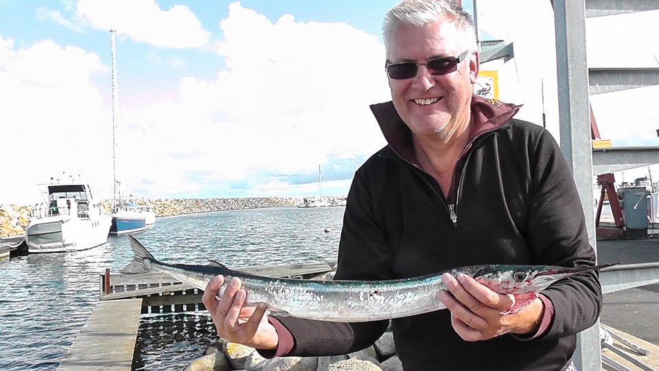 Hej ! Jag var på trollingtur med pojken Fredrik, Niklas Pettersson och Juha Räsänen nere i Simrishamn helgen 28-29 sep. Målet var förstås lax och det fick vi ett antal med den största på 7,5 kg. Men vi fick också några ovälkomna hugg i form av horngäddor. Dessa är ofta en bifångst som man helst vill slippa. Men ett av huggen resulterade i en stor fisk som vi direkt såg att det hörde hemma i en rekordnotering. Fisken tog på djuprigg med bete Grizzly. Fisken fick följa med till land för att mätas och fotograferas. Vikt 1050 g, längd 84 cm och omkrets 18 cm. Hälsningar Leif Kuusela