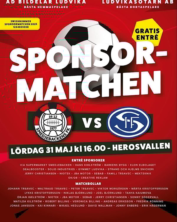 Fyll i din e-postadress för gratis uppdateringar om Smedjebackens FK A-lag Herrar