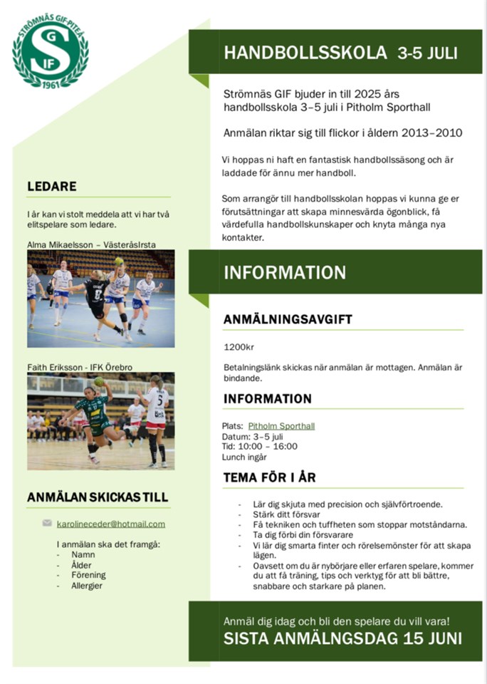 Fyll i din e-postadress för gratis uppdateringar om Strömnäs GIF HK Sommarhandbollsskolan