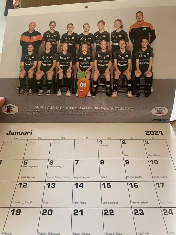 Hej I fredags kom lag kataloger sänt till oss, vilket jag visade barnen idag. Det finns i snitt 3 att köpa per familj (tror inte det blir mer rusande åtgång än så). De kostar 150kr och 50kr går till laget. Man river av månad för månad så att laget hela tiden syns. Kanske en fin julklapp till våra tjejer eller till en mormor, morfar, farmor eller farfar? -Helt frivilligt- Ni beställer via mig - jag kommer inte skicka ut automatiskt, utan var och en hojtar själva till mig. Deadline 10/12 så jag i god tid hinner skicka resten åter. Betalning till Malin Berglund.