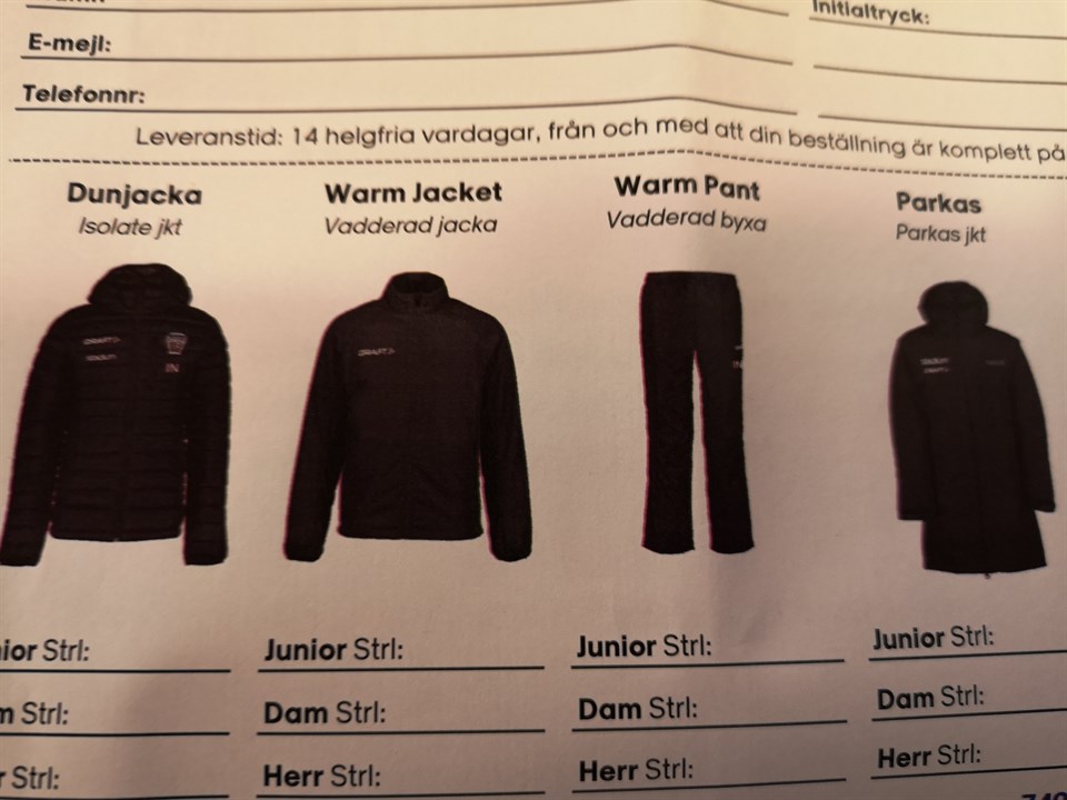 Nytt för i år är att vi har ett avtal med Stadium för köp av träningskläder. Det innefattar kläder från Craft med tryck som enkelt kan köpas av spelare/förälder direkt från stadium.se. Där har du möjlighet att handla träningsprodukter ur föreningens utvalda sortiment och varje köp ger en kickback till föreningen. Redan nu finns möjlighet att handla ur SIFs sortiment på stadium.se med leverans direkt hem till dörren. För spelare/föräldrar: https://www.stadium.se/foreningar/1868370 Vill man beställa täckjacka/byxor beställs det via mig. Finns beställningslappar på IP