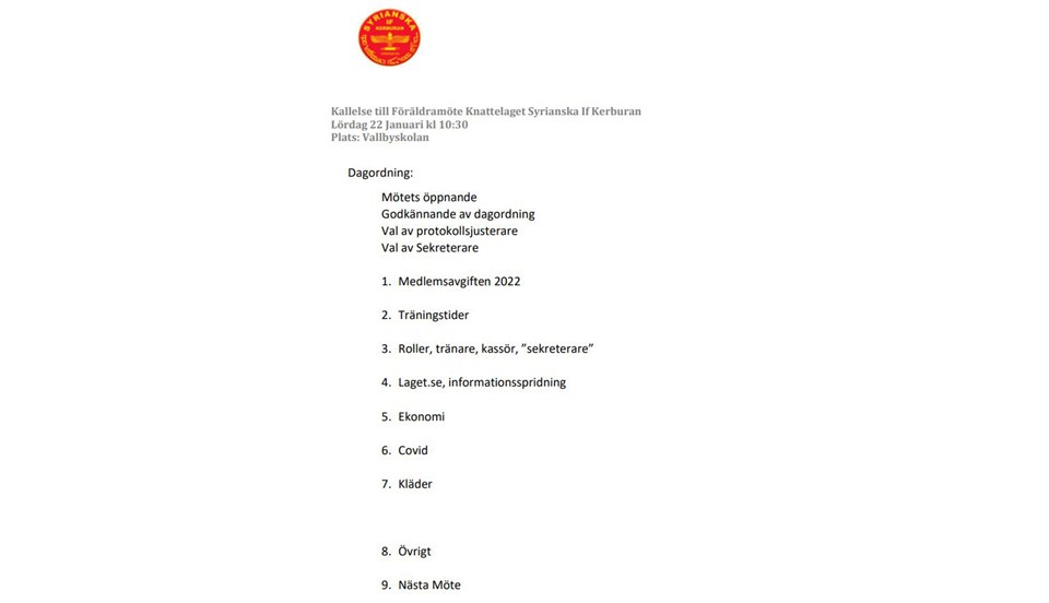 Hej, På årsmötet beslutades att vi kommer ta ut en medlemsavgift på 750 kr / barn. Det går bra att swisha vår kassör Simon Issa de pengarna till nummer 0707-940093 senast den 28 februari. P14/15 25 feb 2022 0kommentarer