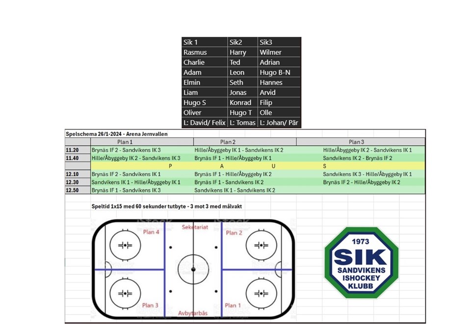 Hej! Här kommer lagindelning och spelschema inför poolspelet hemma 26/1. Härlig lördag på er alla så ses vi på vallen imorgon taggade till tårna! // Ledarna