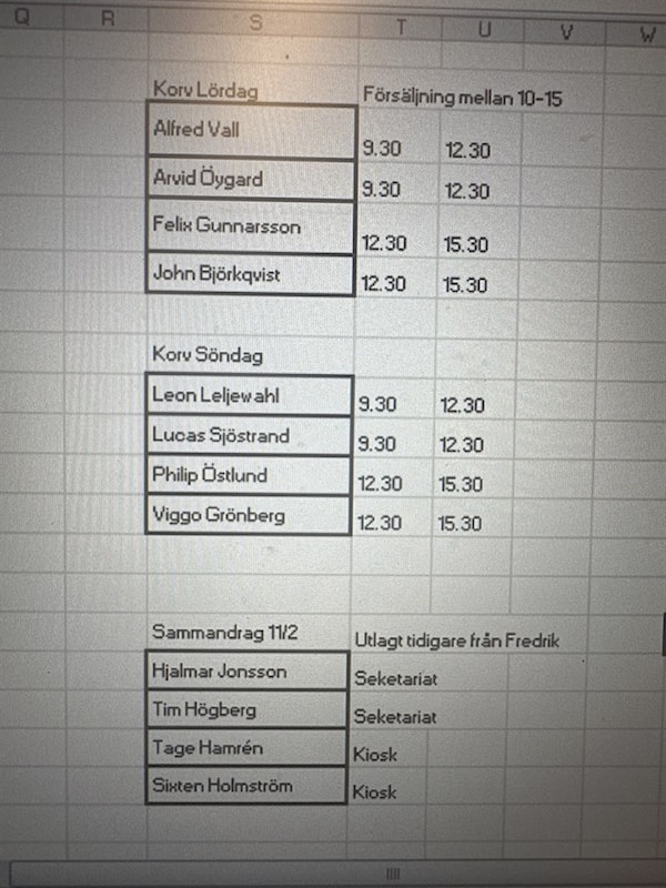 Nästa helg har vi både korvförsäljning och sammandrag där vi lär hjälpas åt. Här kommer schemat för korvförsäljning lördag-söndag och sammandraget på söndag. Som tidigare nämnt så går det såklart att byta med varandra om det är så att någon har förhinder men det är något ni får lösa mellan varandra :)