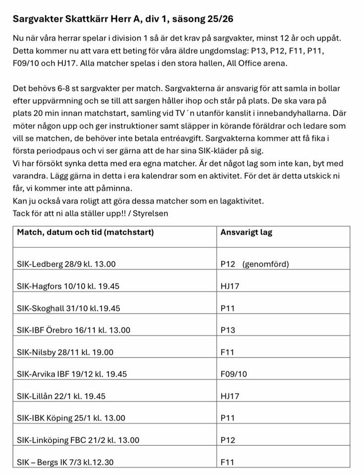 Hultsberg IBF (hemma) | 26 okt, 11:00 |