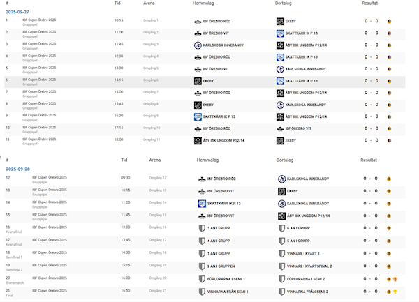 | Dotteviks IF/Arvika IBF 2 (hemma) | 2 nov, 11:00 |