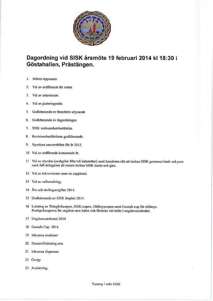 SISK hälsar alla fotbollsföreningar i södra och norra skärgården välkomna till årsmötet som äger rum onsdag 19 februari kl 18:30 i Göstahallen, Öckerö. Välkommen! SISK gn Tommy Wallhult avgående sekreterare SISK Startsida 13 feb 2014 0kommentarer