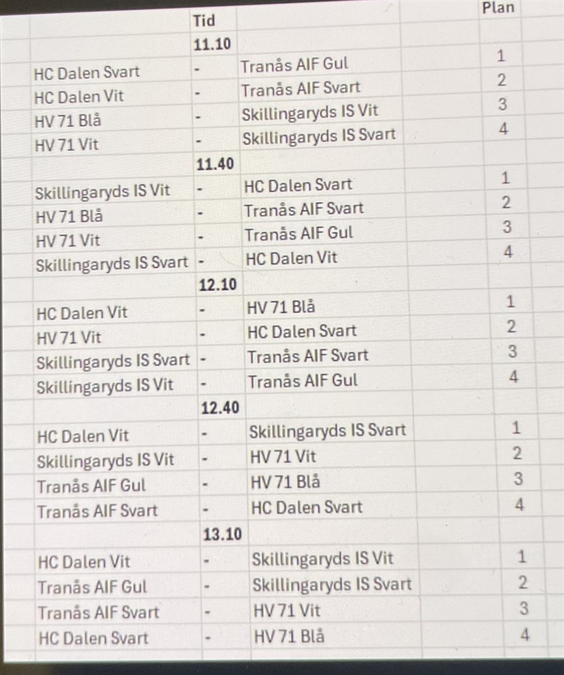 | 3. | (4) | Värnamo Hockey |