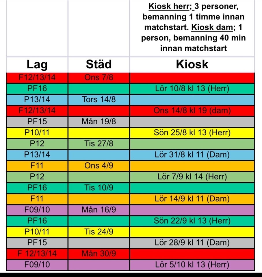 Höstens städ och kiosk schema P-16 1 aug 2024 0kommentarer