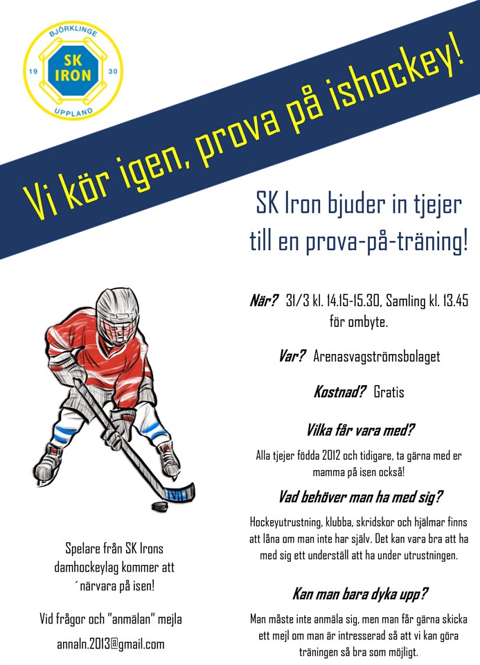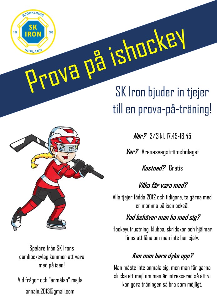 Sk Iron Hockey, Damlaget och Ungdomsrådet bjuder in nyfikna tjejer o så även mammaor till kul på is. Hockeyskolan 7 feb 2019 0kommentarer