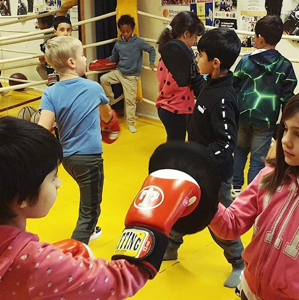 Full fart I Stenhagen med skolelever som provade boxning. Stora grupper kom att prova boxning i flera pass. Slutligen kom våra duktiga boxare och tränade övertid.