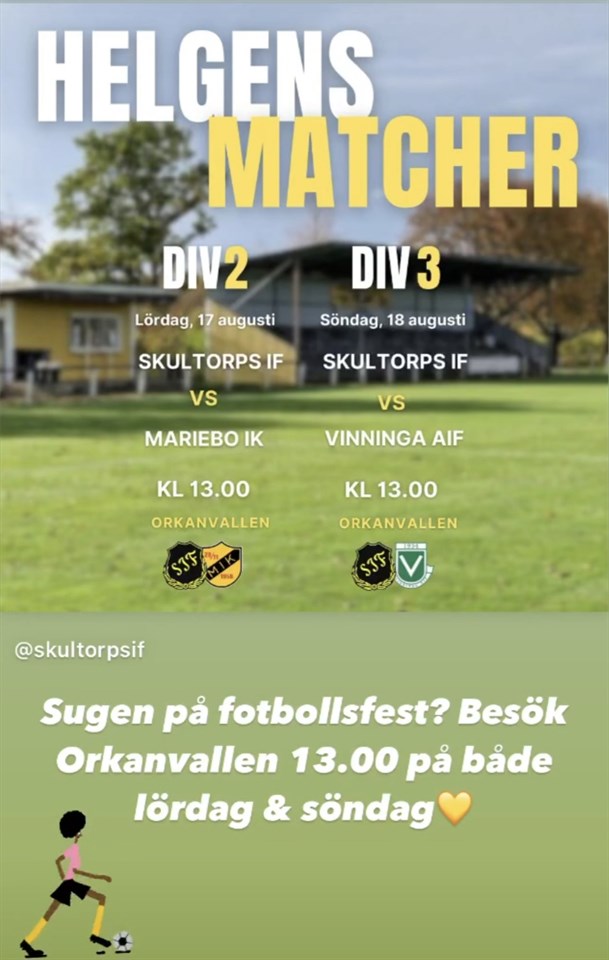 Match Onsdag 28/8 Skultorps IF U mot IFK Tidaholm kl 18:15