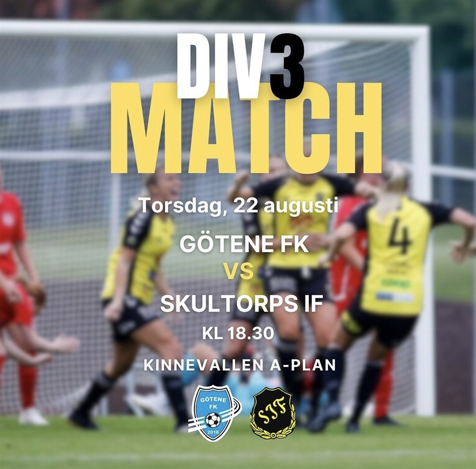 På Torsdag reser Skultorps IF U för att möta Götene FK borta på Kinnevallen i kinne vedum, så har ni inget för er så ta och kom bort och stötta våra Gul svarta tjejer.
