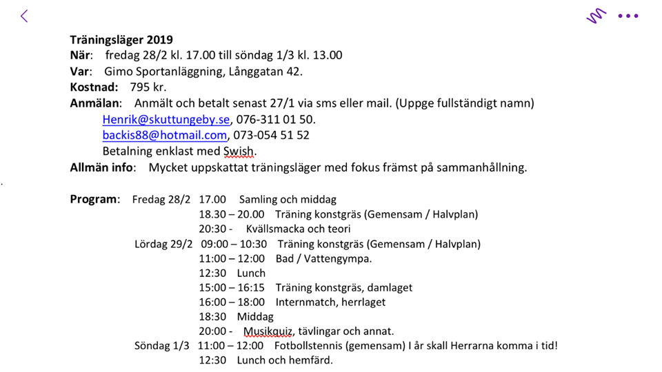 Mat, träningstider och bad stämmer. Övrigt kan variera lite. Damer 19 feb 2020 0kommentarer