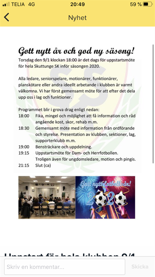 - -Vi hälsar några 'nya' spelar välkomna tillbaka till SSK som har varit i grannföreningen några år. -Medlemsavgift/aktivitetsavgift skall betalas om man ska träna/spela match i SSK, info finns på SSK hemsidan - Våga vara trött och svettig på match/träning - Ingen träning, kontakta alltid Chrille som vill veta varför. - Kalendern är uppdaterad, då vi har fått nya träningstider i Jan-Feb - Måndagar UP kl 19.45-21 Onsdagar DIÖS kl 21-22.30 -Träningstider vår/höst i Skuttunge Måndagar kl 19-21 Onsdagar kl 19-20.30 ( Fika efter) -Träningsmatch mot Tierp 19/4 kl ? ( ej klart än) -Träningsläger i Gimo med herrlaget Fredagen 28/2 kl 17 - Söndagen 1/3 kl 12.30 mera info kommer senare. - 400 kr/st för träningsläger som man swischa till Chrille innan den 27/1. Betalning=anmälning 073 0545152 - Spelarrådet/festkommittén väljs på träningsläger i Gimo. Nu laddar vi för en rolig och kul fotbollssäsong 2020 Damer 11 jan 2020 2kommentarer