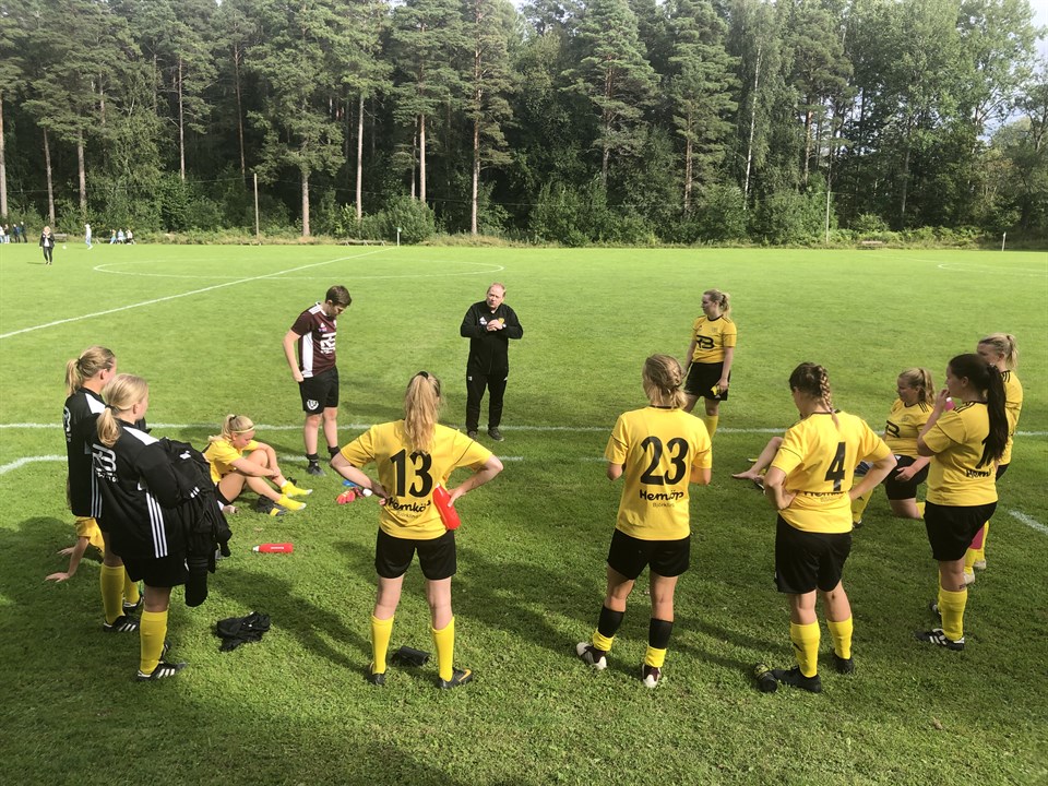 Hejsan alla fotbollsälskare och älskande fotbollar! Wow wow wow vilken spännande match vi fick skåda denna söndag i september mellan Skuttunge och Rådmansö. Mina naglar har aldrig varit så här korta, min röst aldrig så här hes och min puls har nog aldrig varit så här hög. Typ. Rådmansö var ett starkt, tufft och lite småfult lag om jag får säga det med riktiga Skuttungeglasögon på. . Nåja. Vi börjar matchen starkt och efter tretton minuters spel får Thelma boll på vänsterkanten. Hon sparkar till bollen som styrs in i mål av en hemåtspringande motståndarback. 1-0. Bara tre minuter senare gör Pao en sån där riktig rackabajsareutspark som bara hon kan som Malin vinner på mitten av deras planhalva. Hon springer med en jädrans fart ner mot kortlinjen, lägger in bollen snett inåt bakåt som når Thelma i straffområdet. En bredsida senare och vi har utökat ledningen. 2-0. Någonstans här börjar Rådmansö sakta men säkert jobba sig in i matchen. Både dem och vi har några farliga anfall men vi får utdelning i minut 39 när Marre slår en löpboll mot Malin som åter kommer med en hejdundrande fart mot mål. Strax utanför straffområdet drar hon till och bollen seglar in över målisen. 3-0. Men ”vad-skönt-hörrni-att-leda-med-tre-noll”-känslan fick endast vara i sissådär tre minuter. Efter lite otur med sol i ögonen osv lyckas en blåvit spelare vinna boll strax utanför vårt straffområde. Hon slår en fin passning till en medspelare som kan lägga in bollen vid Paos högra sida. 3-1. Domaren blåser av första halvlek och när andra drar igång känns det som om vi fortfarande är väldigt nöjda med att vi gjort tre mål. Rådmansö verkar ha käkat taggtråd i pausvilan och de kommer ut med ny energi. Det är riktigt spännande med kamp över hela planen tills klockan visar matchminut 60. Rådmansö får ett väldigt fint anfall där vi nästan är helt stillastående och de spelar runt oss tills en av deras anfallare får bollen, helt omarkerad, i vårat straffområde. Hon skjuter in bollen i mål och det står nu 3-2. Resten av matchen är onödigt spännande om du frågar mig då både vi och Rådmansö har några fina chanser att göra mål på. Olyckligtvis lyckas vi inte göra några fler mål men lyckligtvis lyckas inte Rådmansö heller göra det. Domaren blåser av matchen och vi kliver av planen med 3 pinnar. Vi fick verkligen kämpa för dagens seger och om jag får säga det själv så var det ändå rättvist. Vi var snäppet vassare och vi hade kunnat sätta några fler bollar i nät. Har fortfarande mina Skuttungeglasögon på mig, kanske känner Rådmansö något helt annat. Men vad gör det om hundra år? Tacohej, Sara Bä