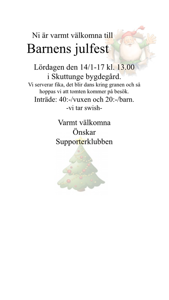 Välkomna till barnens julfest 14 januari Supporterklubb 20 dec 2016 0kommentarer
