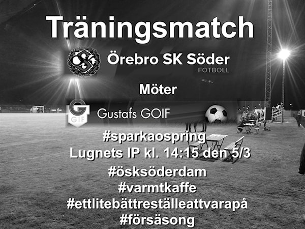 På lördag är det dags igen. "Hemmapremiär" i träningsmatchandet då vi tar emot div.1-kollegan Gustafs GoIF från div. 1 Norra Svealand.