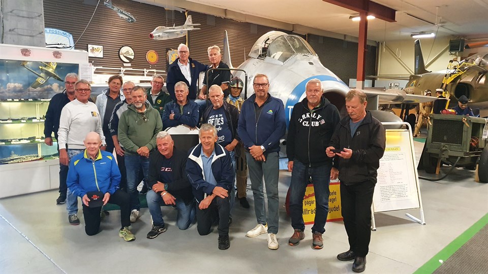 1 september 2022 I veckan har vi haft årets första camp. Nu är vi så många så med tillskott av några "juniorer" från 65+ blev vi 10-11 utespelare på varje sida. Det blev härliga tvåmål och gula gänget vann första dagen. Sen gjorde de misstagen att dels håna de blåa på kvällen dels, för så måste det väl varit, dra ut på någon nattklubb för dagen efter fick de storstryk. Vi skildes dock i geymtlig stämning och ser fram emot nästa camp och nästa batalj som enligt plan blir i Nor (strax väster om Karlstad) vecka 44. Mer information kommer då allt är spikat. Vi hann också med ett besök på Flygmuseét i Söderhamn. På bilden är de som inte ivrigt drog iväg till ishallen då gudningen var över. Du som under 2023 fyller 70 år eller om du är målvakt, fyller 65 år är hjärtligt välkommen att vara med. Bara hör av dig till mig. Vi kommer att delta i https://carhahockeyworldcup.ca/ i mars 2023! Hockeyhälsningar Lars Törnqvist 070-597 31 01 lars.tornqvist@metodicum.se