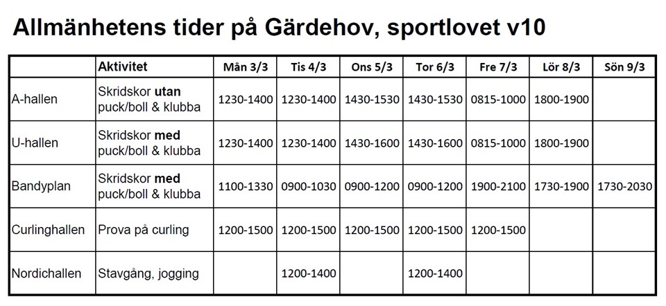 På bifogad bild ser ni tider för allmänhetens åkning på sportlovet. /Andreas