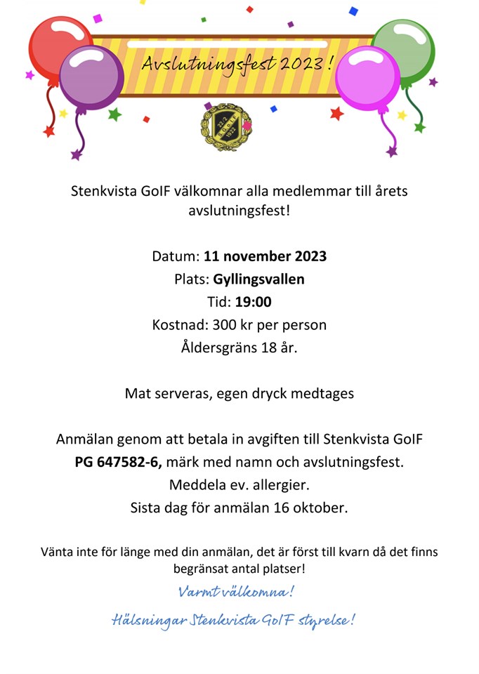 Då har det blivit dags för den årliga senioravslutningen. Ju fler vi blir desto roligare blir det. Sista anmälan är 16e oktober. Mer info enligt bild. Herrlag 6 okt 2023 0kommentarer