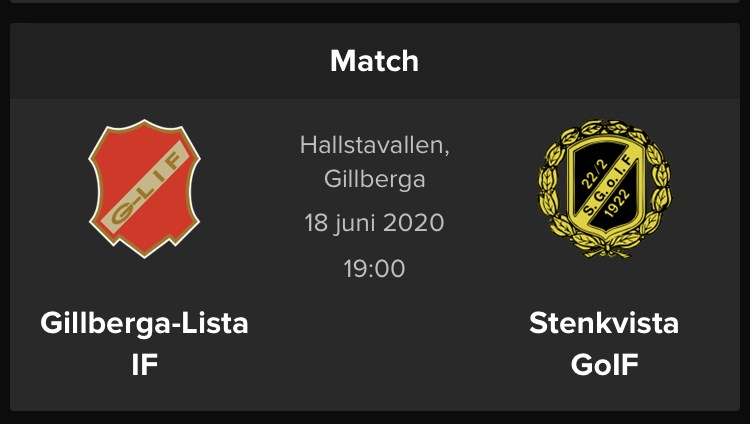 Äntligen dags för en match! En match som även är den enda innan enkelserien drar igång nästa fredag, hemma mot Eskilstuna Babylon. Enligt riktlinjerna får man inte locka publik till matchen så det gör vi inte. Samtidigt tillåter arrangemanget 50st exklusive spelare o ledare. Med lite spridning på Hallstavallen och på den nya läktaren som Gillberga/Lista har byggt så lär Corona-avstånden kunna hållas med marginal Annars följer ni matchen via Min Fotboll. Min fotboll - GLIF-SGoIF Truppen: Samling 18.00 medtag egen vattenflaska. - Anton Jonsson - Anton Pettersson - Jocke Lundgren - Christian Taura - Isak Söderqvist - Mathias Björklund - Elias Blomgren - Jesper Karlsson - Robban Andersson - Eskil Calmered - Jonathan Hiltula - Rasmus Isetoft - Oskar Bäckman - Jocke Öman - Adde Berglund - Charlie Ekström