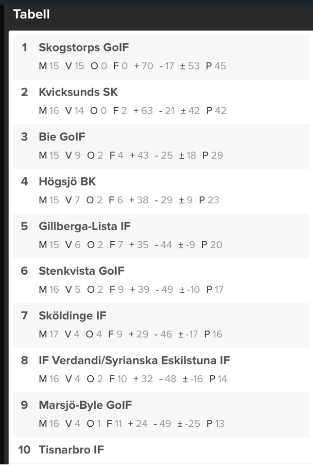 Kvicksund borta imorgon 16/9. Matchen startar 16.00. Vi har mött Kvicksund ett par gånger under säsongen. Innan säsongen möttes vi i en jämn match som slutade 4-4, efter att vi haft ledningen med 2-0 och 4-2. Våra säsonger har därefter skilt sig väsentligt. I serien vann Kvicksund på vår hemmaplan. Kvicksund går in i matchen som storfavoriter. Det ska vara tre enkla poäng imorgon och fortsatt häng på Skogstorp. Vi kommer givetvis ge allt för att så inte ska bli fallet. Vi kommer senast från en komfortabel och efterlängtad seger, mot Verdandi borta. Kan vi behålla effektiviteten från den matchen blir vi farliga. Truppen imorgon: Robin Bergling Robban Andersson Henrik Nilsson Jesper Karlsson Anton Jonsson David Gyllhem David Karlsson Alexander Mellkvist Oskar Bäckman Emil Revahl Kevin Malm Mike Karlsson Oskar Larsson Casper Gustafsson Tobbe Svensson