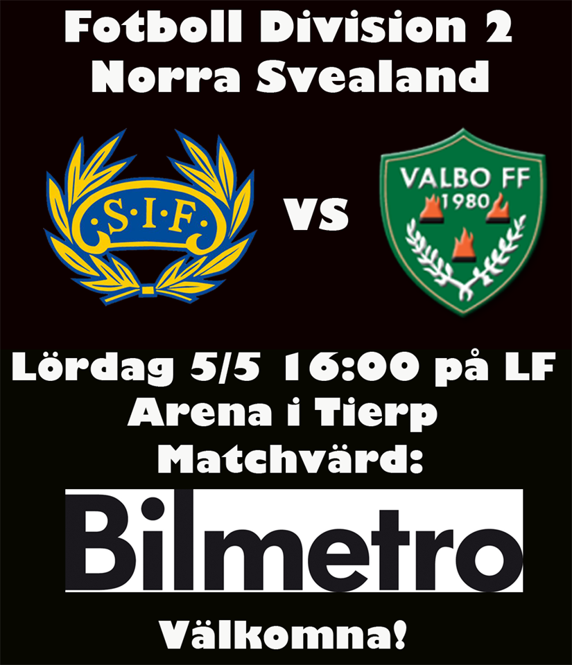 Lördagens (5/5) match mot Valbo FF spelas på LF Arena i Tierp! Avspark 16:00. Välkommen!