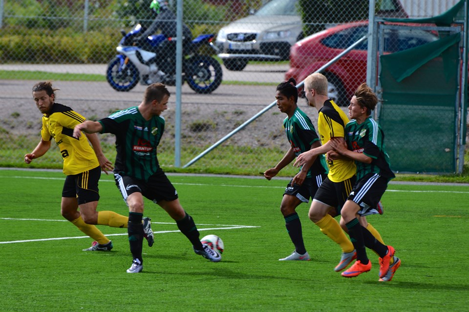 Dagens drabbning på Lötens konstgräs blev en svängig historia. Vi börjar bra och det känns som om vi har ganska bra kontroll på matchen. Alex är sånär på att sätta dit den i början och vi skapar en hel del målchanser. Istället får GUSK 2 till en riktig pärla och gör 1-0 strax innan halvlek. Det duggar tätt mellan matcherna nu och vi har drabbats av en del skador, sjukdomar och också dragit på oss avstängningar. Tur då att vi har ett duktigt P16 lag som kan vara behjälpliga. Fyra killar födda 2000 spelade andra halvlek. GUSK gör 0-2 när vi är inne i en ganska bra period. Då kändes det som om matchen höll på att glida oss ur händerna. När Aman gör 2-1 efter ett snyggt anfall där Ayman spelar ut bollen till Gurra som får till ett perfekt inlägg känns det dock som om vi är på gång. Som en kalldusch kommer 3-1. Vi fortsätter att kämpa och Oskar Å gör 3-2 följt av Philip S första A-lagsmål och 3-3. Sista kvarten blir det riktig Hawaii fotboll där GUSK har ett par bra chanser och Aman avslutar med att sätta en boll i stolpen. Med tanke på hur matchen utvecklade sig får vi vara nöjda med 1 poäng. Bra inställning och friskt spelat av våra unga spelare gör att vi håller oss kvar på övre halvan av tabellen.