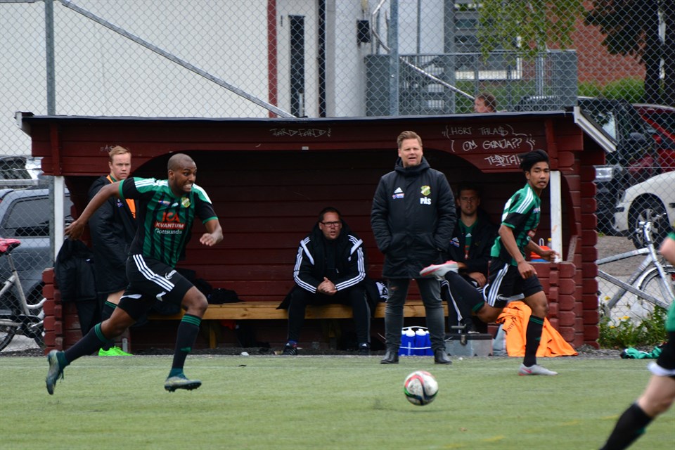 Jag har varit tjatig om vår ineffektivitet i tidigare referat. Idag var det dock ombytta roller. Vi var ruggigt effektiva mot ett ineffektivt Vaksala. Inför matchen var Vaksala storfavorit. Toppen mot botten i tabellen även om båda lagen spelade division 5 fotboll förra året. Matchbilden från start var väl ungefär som förväntad. Vaksala hade mycket boll men vi försvarar oss väldigt bra och låter inte hemmalaget komma till särskilt många lägen. Efter cirka 10 minuter får Lukas bollen och springer i från Vaksalaförsvaret, serverar Aman som dyker upp exakt som han ska och vi leder med 0-1. Vaksala fortsätter att ha mycket boll men vi spelar snålt och med en säker sista utpost i Moberg. På kontring får vi till en hörna. Wikner slår den perfekt på huvudet till Albin som snyggt sätter dit 0-2 till publikens jubel. Jaja åtminstone den tillresta Sunnersta publiken, de andra blev ganska tysta. Efter 0-2 känns det som om Vaksala ökar tempot och på ett snyggt anfall gör de också 1-2 innan halvtid. I andra halvlek tycker jag vi jämnar ut spelet lite. Anförda av Ståhlberg och Wikner skapar vi en del och på ytterligare en fin hörna av Wikner dyker vår egen gubbe i lådan Aman upp igen och gör 1-3. Vaksala fortsätter att ha mycket boll utan att skapa särskilt mycket. Vi kostar också på oss att missa en straff innan matchen är slut. Vårt försvarspel känns stabilt, det nya mittförsvaret med Rask och Albin tillsammans med Collins O och vår yngste spelare Theerapong Buaklin (16 år) släppte inte till mycket. Moberg var säkerheten själv och gjorde ett par kvalificerade räddningar. Nästa match i fyran spelas mot serieledarna IFK Uppsala på Nationaldagen. Sunnersta IP kl. 19,00. Kom dit!