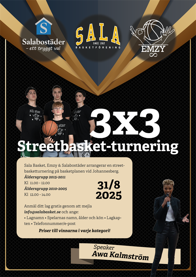 Hej, Nu på söndag anordnar Salabostäder en familjedag på Johannesberg och vi i Sala Basket anordnar basketturnering. :) Se bifogad bild. Kom igen och anmäl lite lag nu, så blir det en kul turnering för alla 💪 /Sebastian