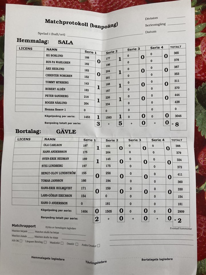 Sala spelade första matchen mot Gävle och vann med 8-2. Sedan mötte vi Hofors och förlorade med 4-6. Sedan var de Hofors och Gävles tur att mötas och för att Sala skulle vinna finalen var det Gävle som måste vinna. Tyvärr gick det inte vår väg för Hofors vann med 6-4 och vann finalen. Jag har försökt bifoga protokollen så ni kan se. Otroligt jämna och spännande matcher. Sala PBF 22 apr 2024 0kommentarer