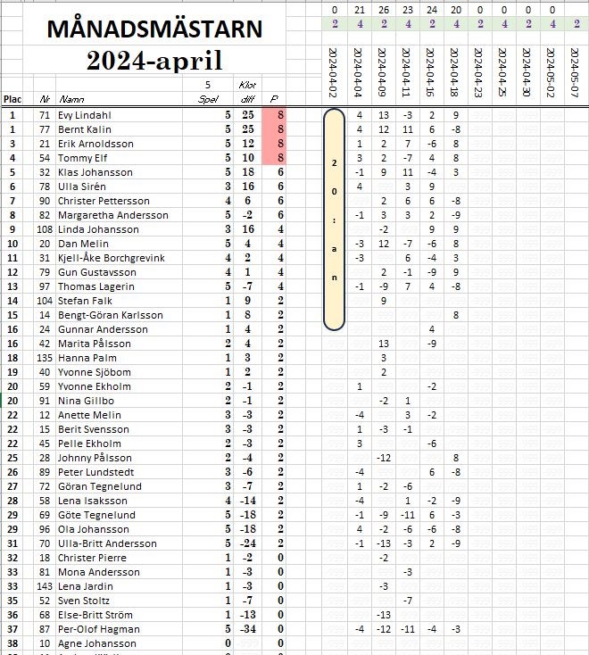 • Månadsmästarn 16/4