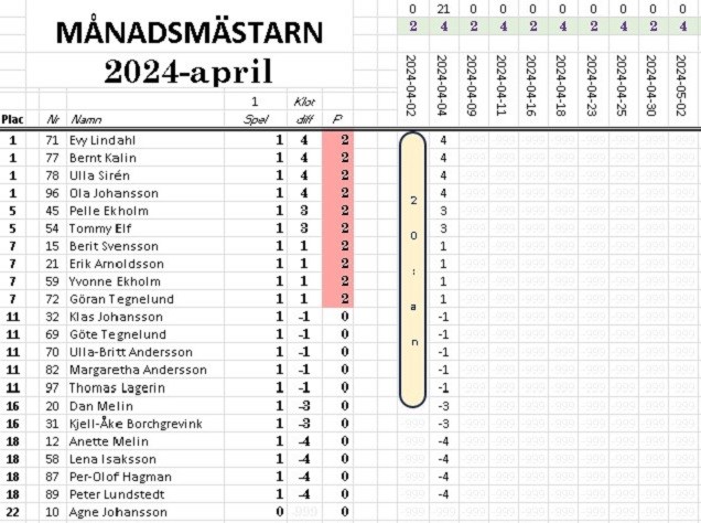 Resultat 20:an 2 april Sällskapet Boule Hjo 2 apr 2024 1kommentar