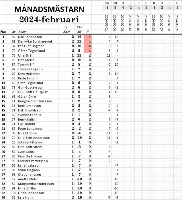 Tabellen Sällskapet Boule Hjo 7 feb 2024 0kommentarer