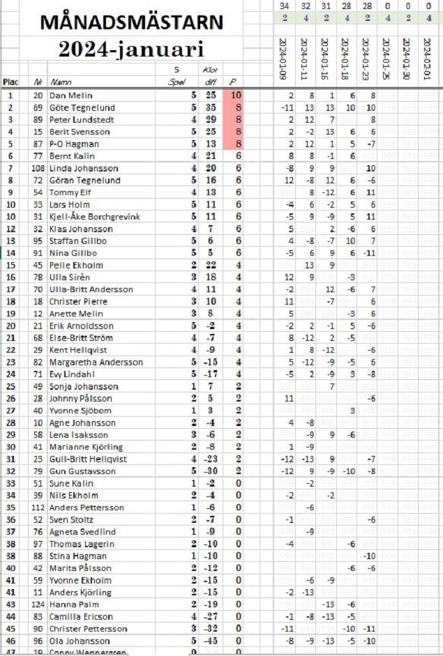 Tabellen Sällskapet Boule Hjo 18 jan 2024 7kommentarer