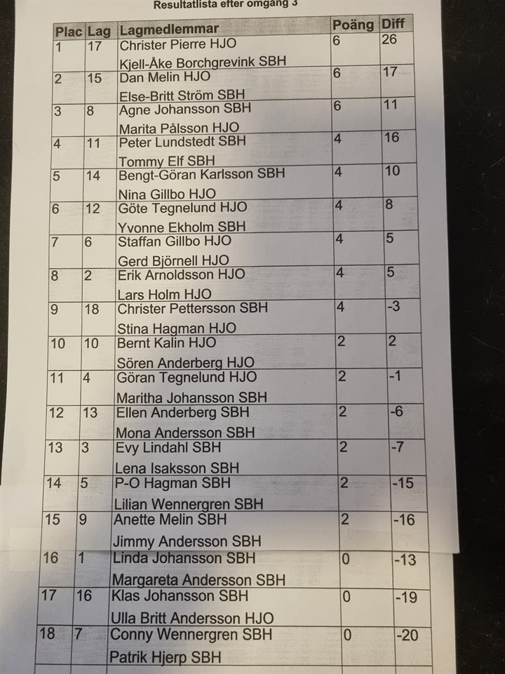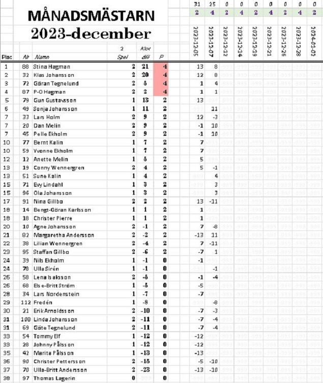 Tabellen Sällskapet Boule Hjo 9 dec 2023 0kommentarer