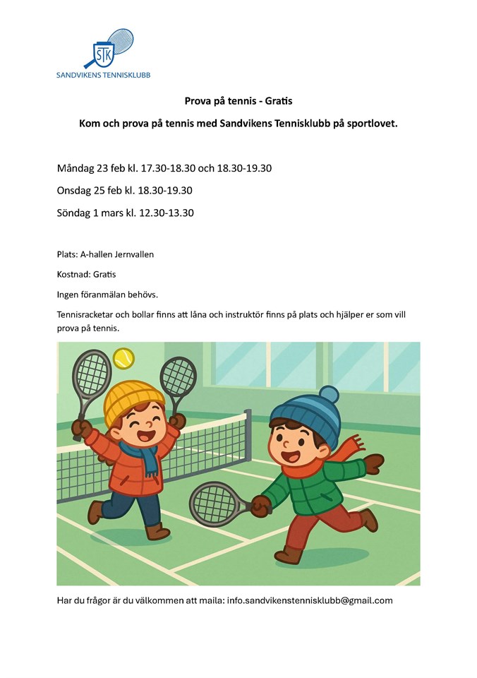 Fyll i din e-postadress för gratis uppdateringar om Sandvikens Tennisklubb