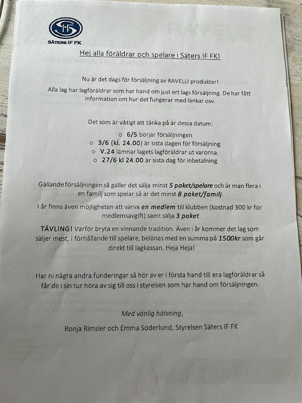 Kom ihåg: 5 st paket/spelare, alternativt 8 st paket/familj om det finns flera spelande barn i föreningen från familjen.