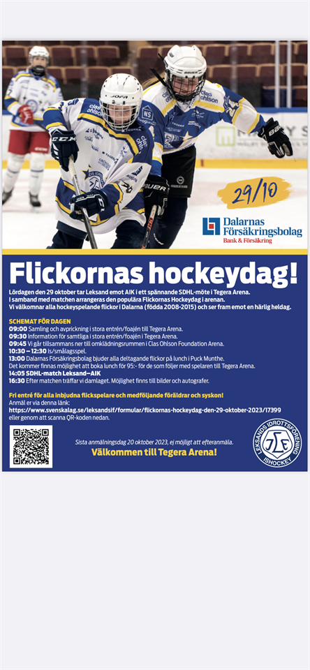 • Tjejhockeydag Tegera Arena 29/10-23