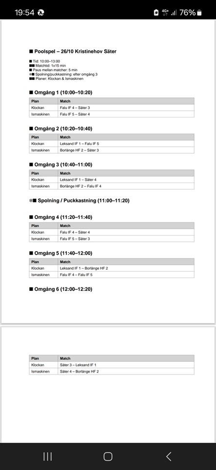 | Borlänge HF (hemma) | 9 nov, 12:15 |
